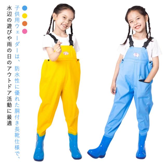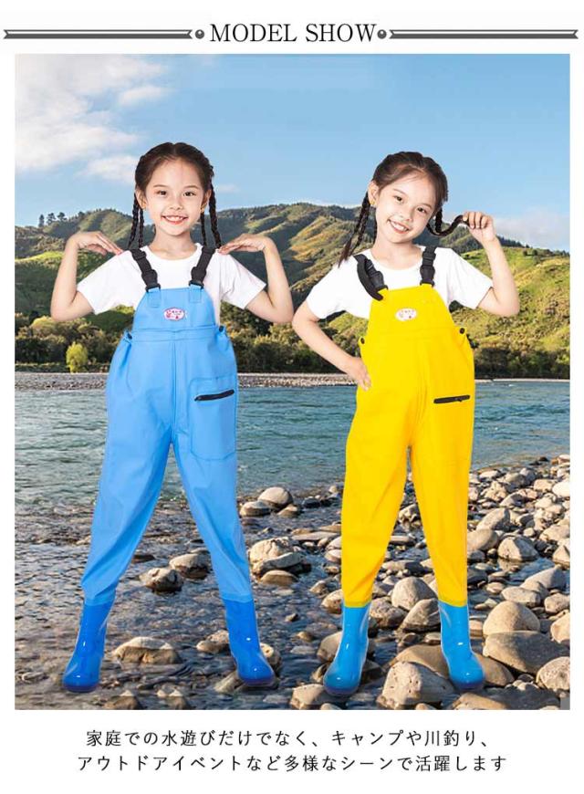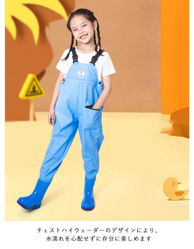 チェストハイウェーダー 軽量 水遊び用 ウェーダー 胴長 胴付き長靴 ウェーダー 滑り止め 防水 快適な着心地 耐摩耗性 収納ポケット付き ウェーダー 男の子 可愛い 遊び着 女の子 雨具 通学