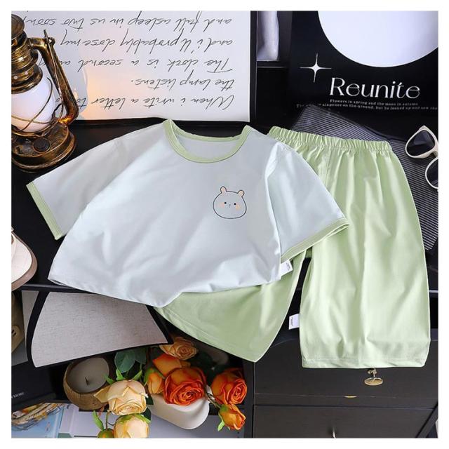 ハーフパンツ ベビー 膝丈 可愛い 女の子 パジャマ 男の子 春 パジャマ 柔らかく軽い薄手の快適Tシャツ かわいい 子供用パジャマ 薄手 キッズ 上下セット 膝下 7分袖 ルームウエア ジュニア 寝間着 寝巻き シンプル 無地 夏 春 夏 おしゃれ