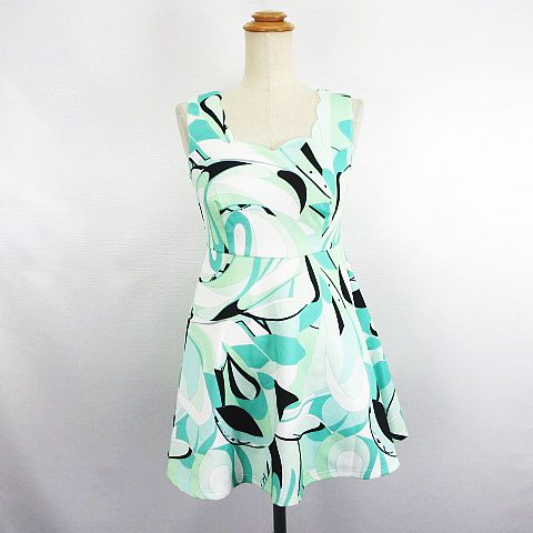 【中古】未使用品 デイジークイーン ワンピース ノースリーブ ミニ丈 幾何学模様 S グリーン系 ※EKM レディース