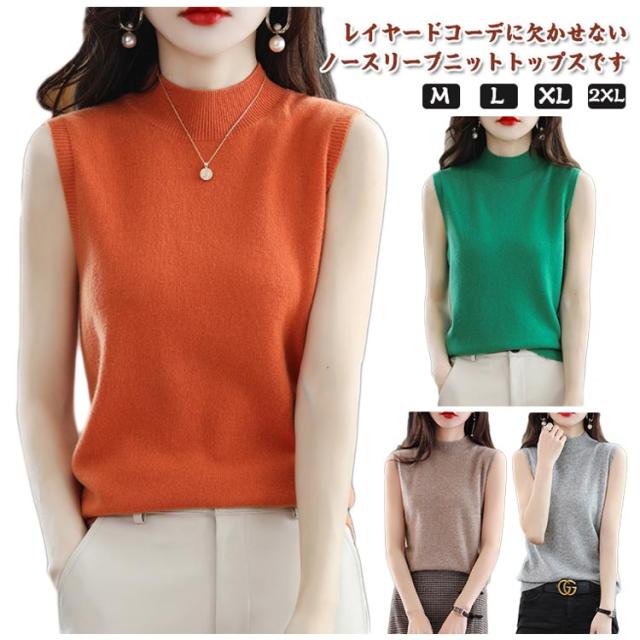 大人 ニットベスト ノースリーブ レディース サマーニット ニットタンクトップ プルオーバー 無地 ニット 洗えるニット タートルネック ハイネック インナー ニットセーター 夏 おしゃれ カットソー ニットソー 母の日 ノースリーブ 春 秋