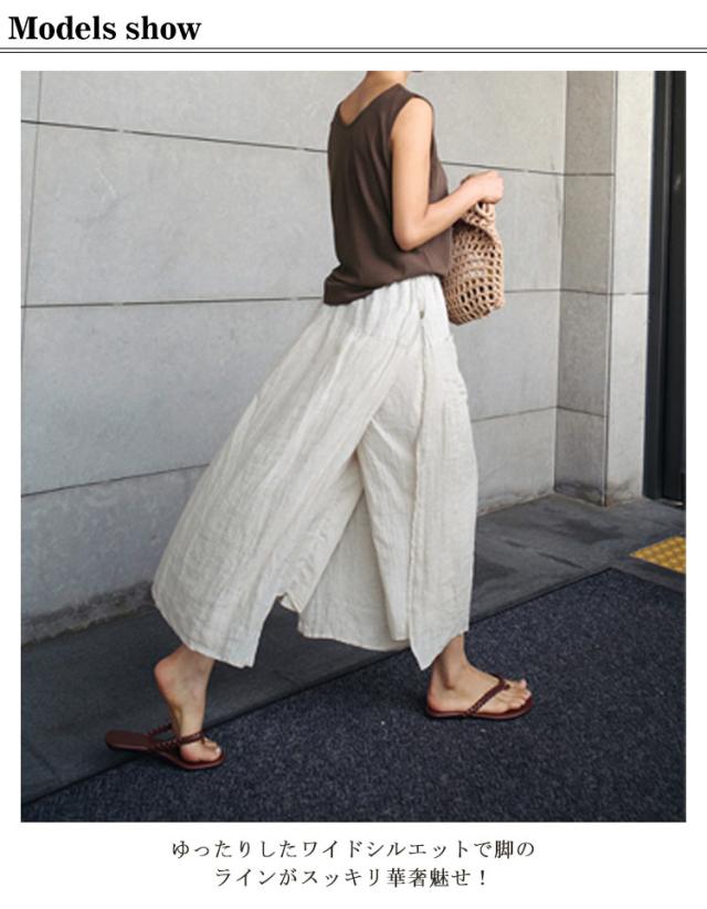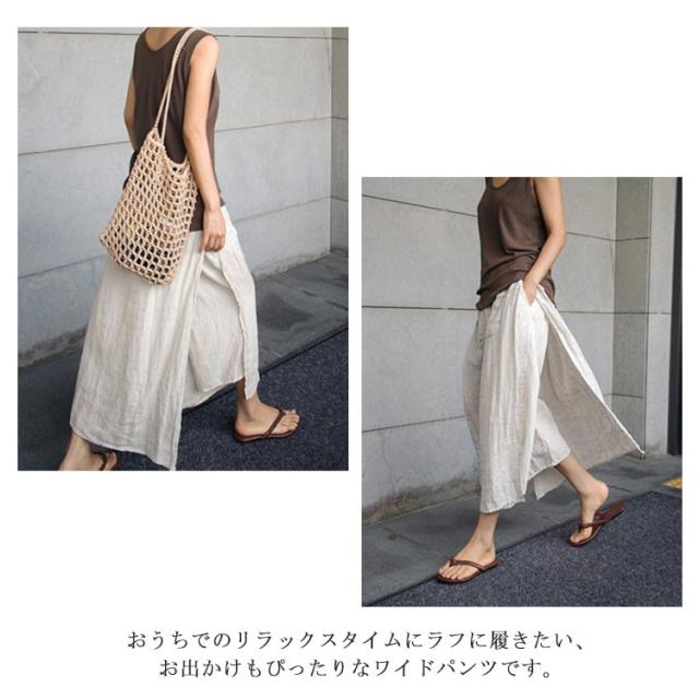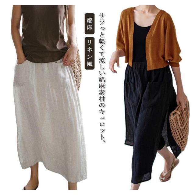 ワイドパンツ レディース キュロット ガチョウパンツ ワイドパンツ 綿麻 スカート 袴パンツ ズボン ゆったり 九分丈 リネン風 フレアパンツ ポケット付き ウエストゴム 無地 レイヤード 大きいサイズ リラックス 春 夏