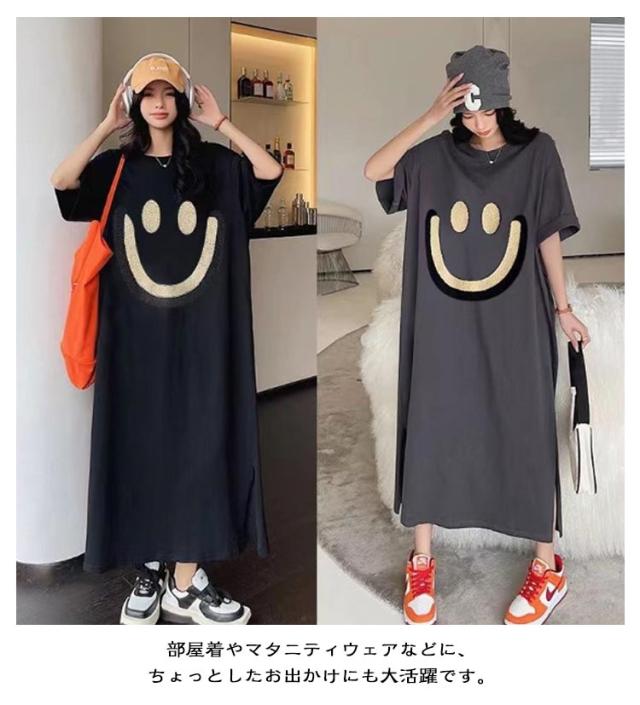 マタニティウェア Tシャツワンピース ロングワンピース ビッグTシャツ オーバーサイズ ロンT Tシャツワンピース ゆったり 部屋着 スリット 可愛い 春 夏 韓国ファッション
