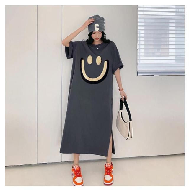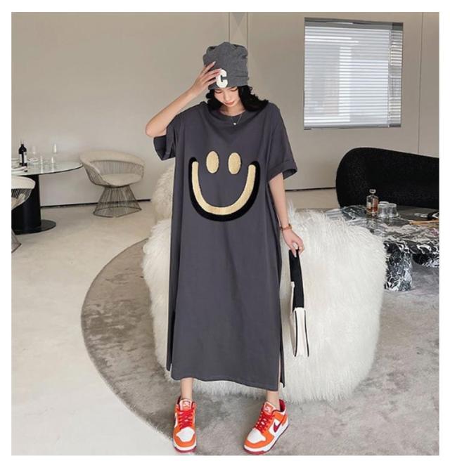 | 「こなれ感」たっぷりのビッグTシャツロングワンピース。 ゆったりシルエットのノンストレスな着心地♪ フロントの笑顔プリントがポイント。 1枚ではもちろん、パンツとのレイヤードももちろん楽しめる実用性のあるアイテム。 部屋着やマタニティウェアなどに、ちょっとしたお出かけにも大活躍です。 | |