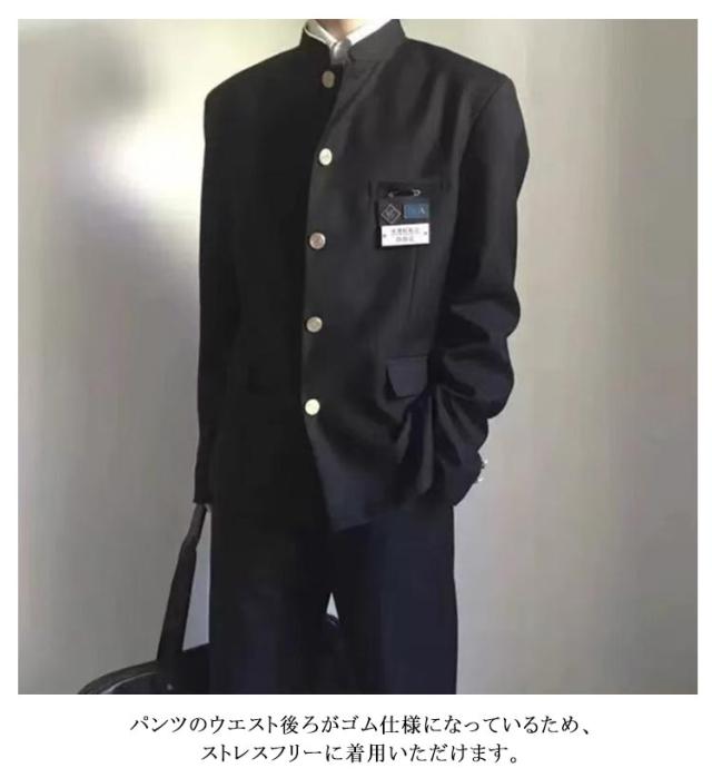 ラウンド襟 ズボン 詰襟 ジャケット 丸洗い 制服 学生服 ブレザー 男子 上着 パンツ+ブレザーの上下セット 上下セット ジュニア 学生服 スクール スラックス ボーイズ ウエストゴム 高校生 中学生 通学 学生服 学ラン 入学式 卒業式 コスプレ衣装 仮装 黒