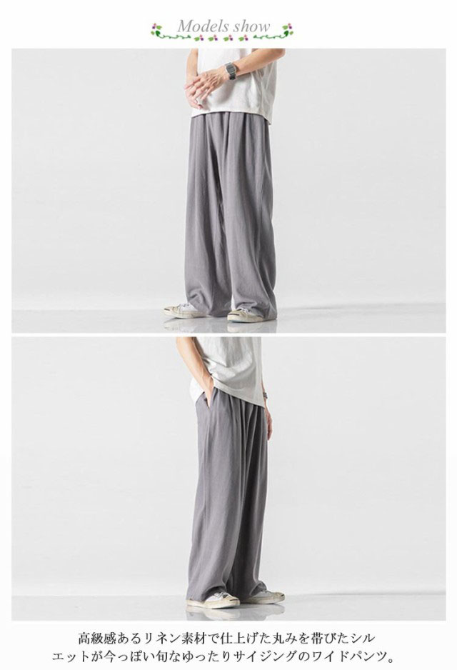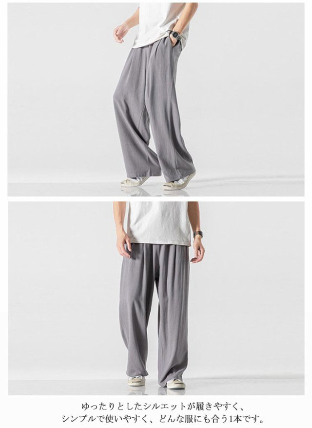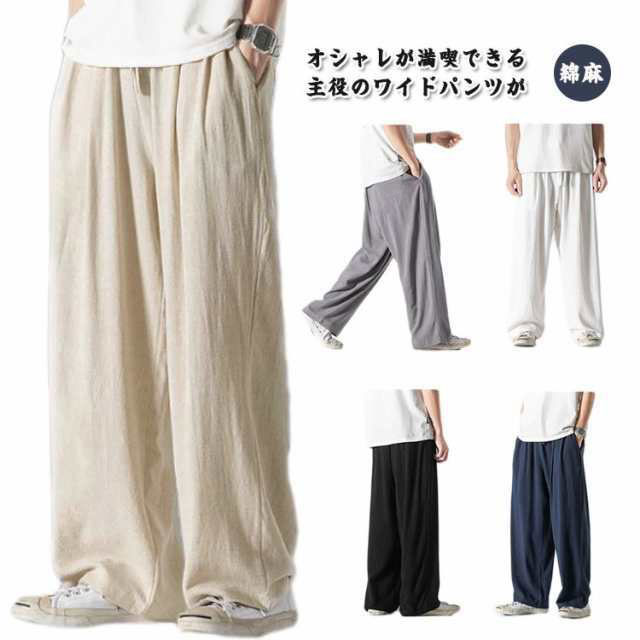 リラックス 太め イージーパンツ バギーパンツ カジュアルパンツ ワイドパンツ メンズ 春 ロングパンツ 無地 薄手 チノパン ウェストゴム ワイドパンツ オールシーズン サルエル 長ズボン 父の日 コットンリネン 夏 秋 ダンス衣装 部屋着