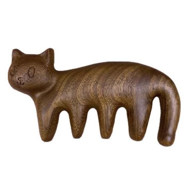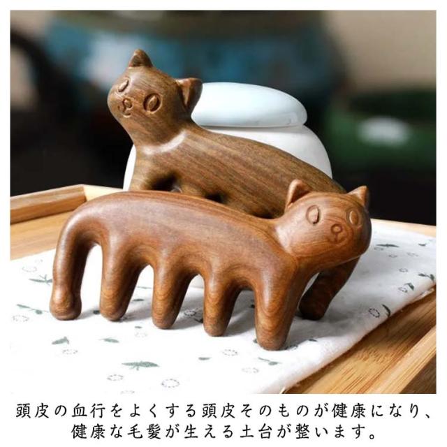 髪くし 猫柄 くし 猫模様 ウッド 髪クシ 木製 くし くし 櫛 コーム ヘアブラシ マッサージ 檀木 櫛 木製 天然 携帯用