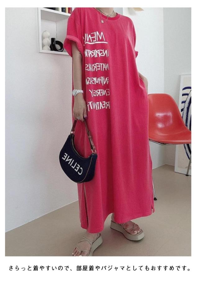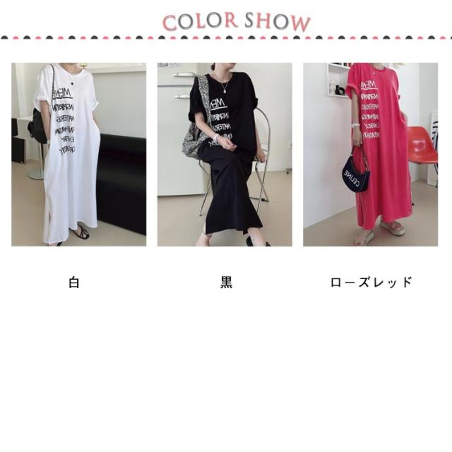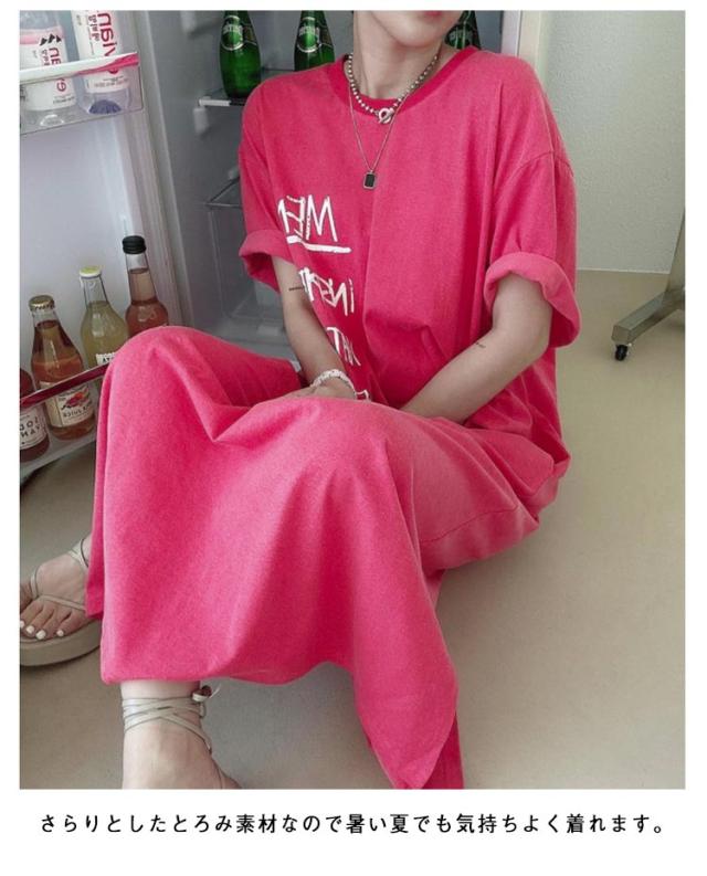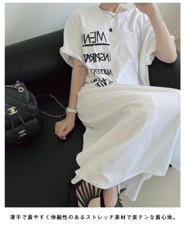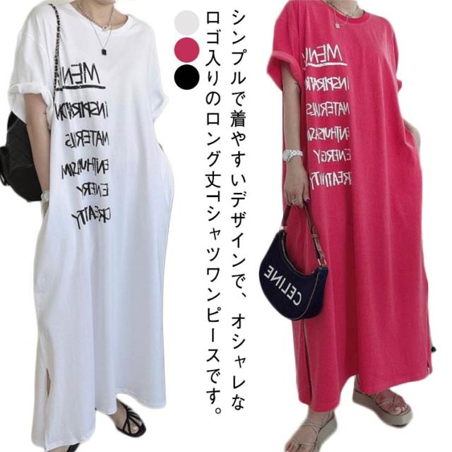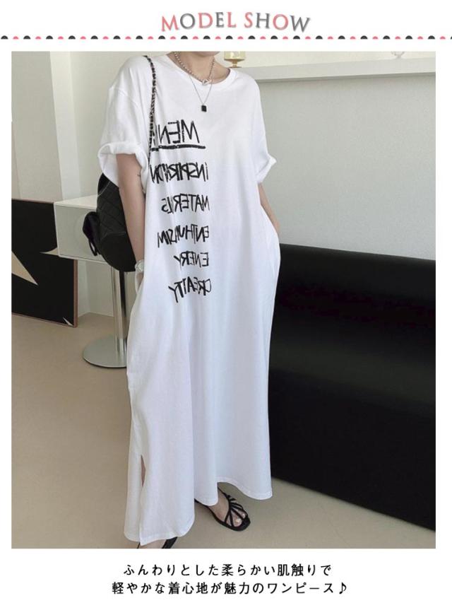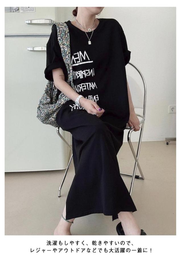 半袖 スウェット ワンピース レディース 体型カバー Tシャツ 半袖ワンピ ロゴ おしゃれ スリット オーバーサイズ マタニティ 半袖 マキシワンピ ゆったり 楽ちん 着回し ルームウエア カジュアル 部屋着 春 夏