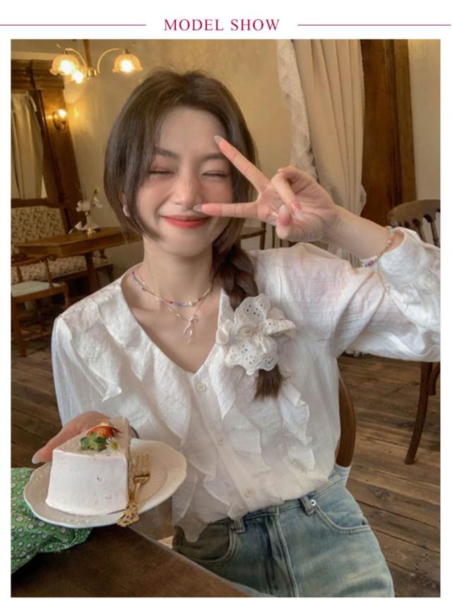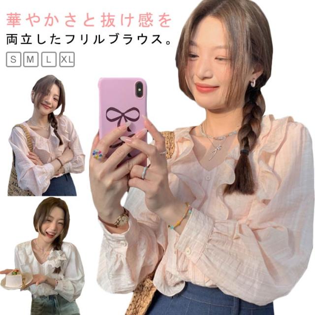 シャツ ラッフルブラウス トップス 長袖 フリルブラウス レディース 秋 春 チュニック デート Vネック フリル ひらひら フェミニン ボリューム袖 ロング 体型カバー 上品 フリルブラウス シャツ レディース トレンド 人気 プチプラ