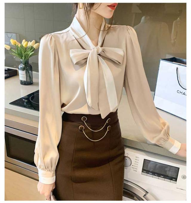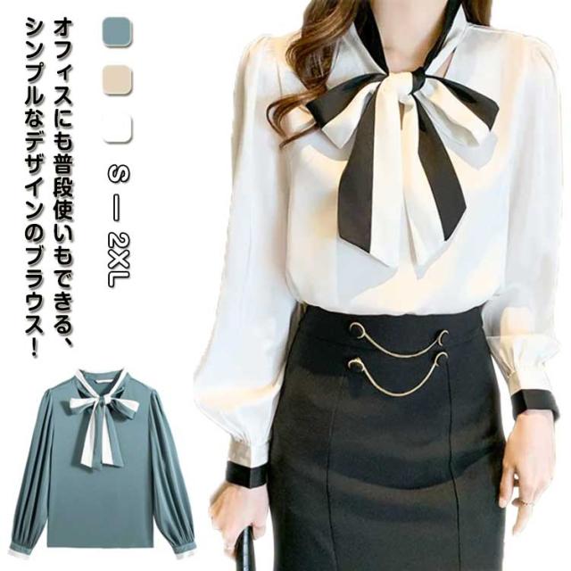 シャツ 長袖ブラウス バイカラーボウタイ シフォンブラウス ボウタイ きれいめ 大きいサイズ レディース ボウタイシャツ 長袖 リボン付き 上品 大人女性 シャツ フォーマル OL トップス 春秋 冬 通勤 ギフト プレゼント