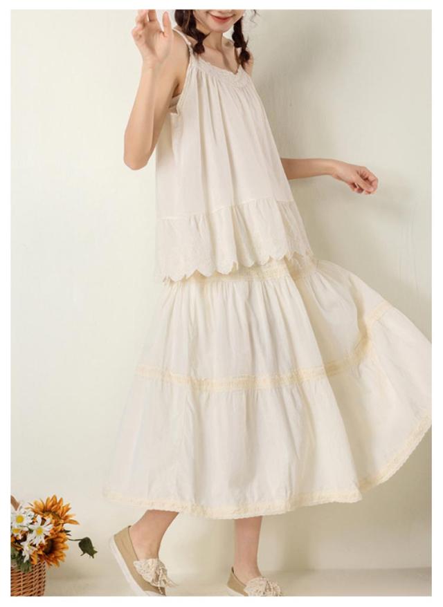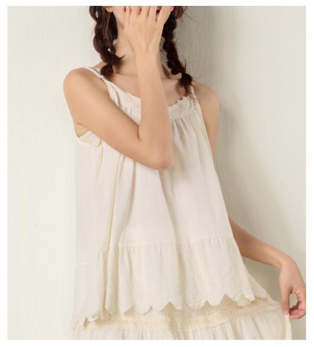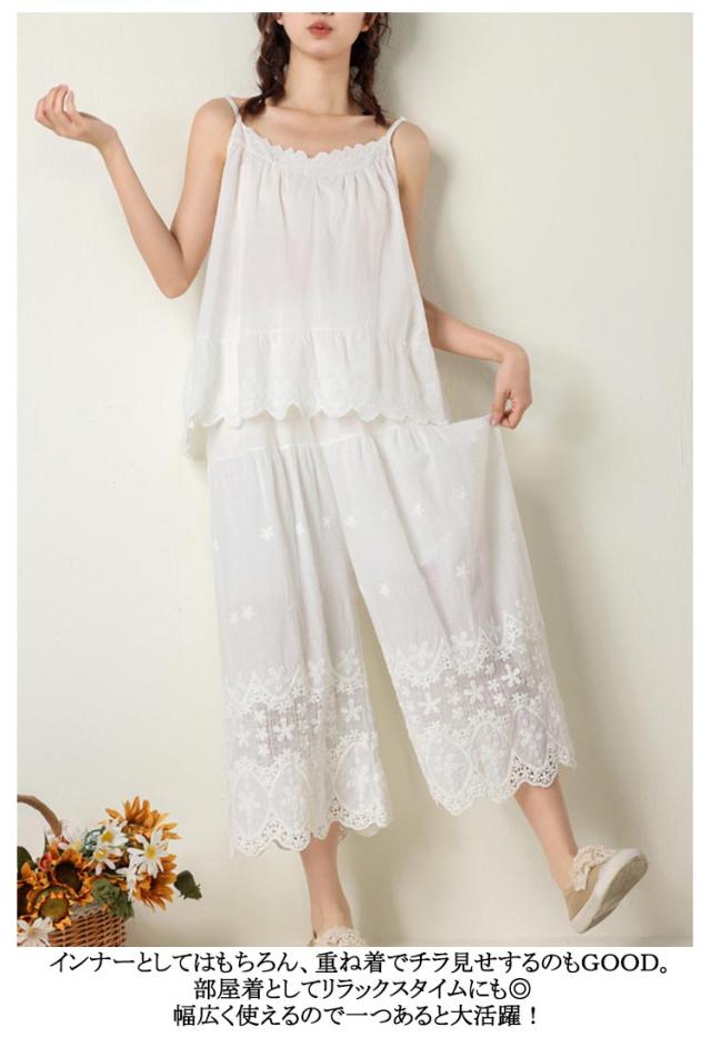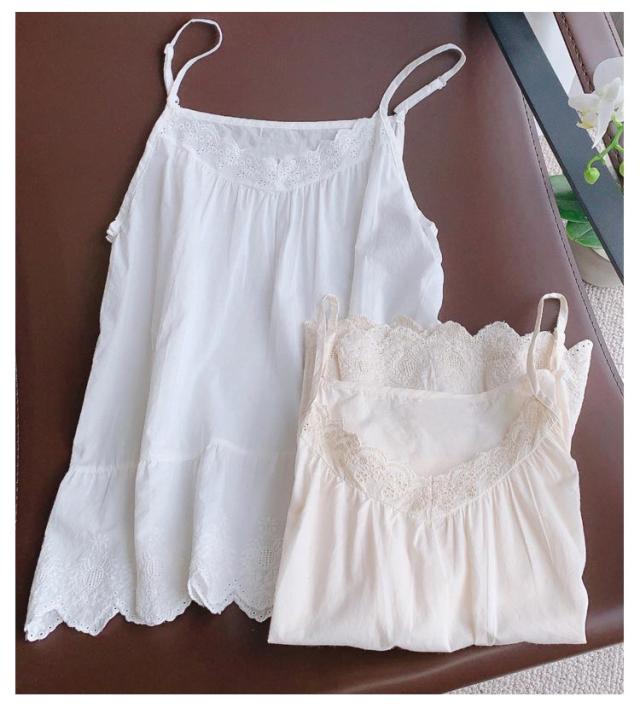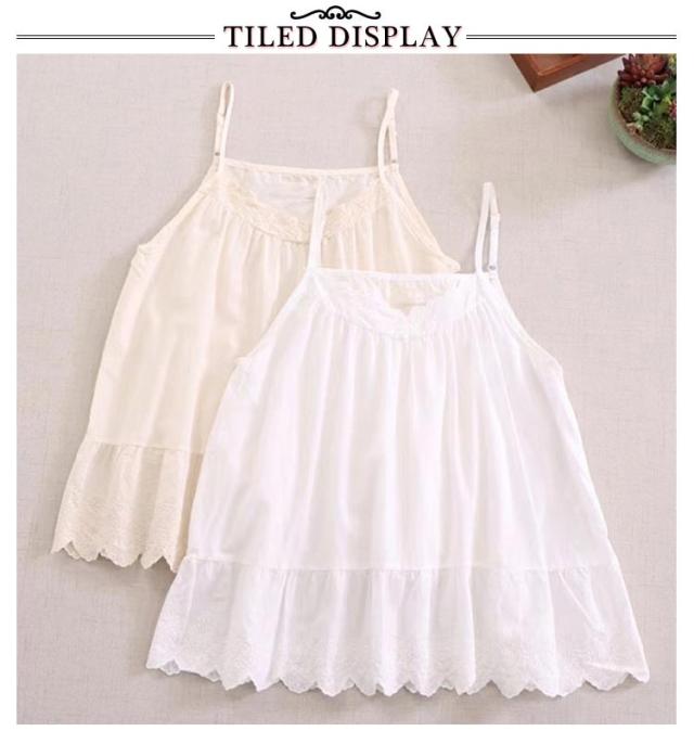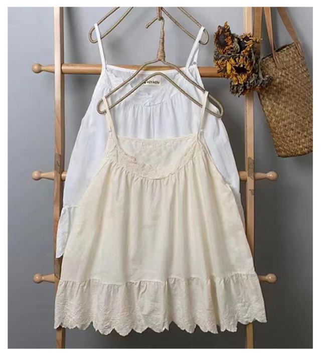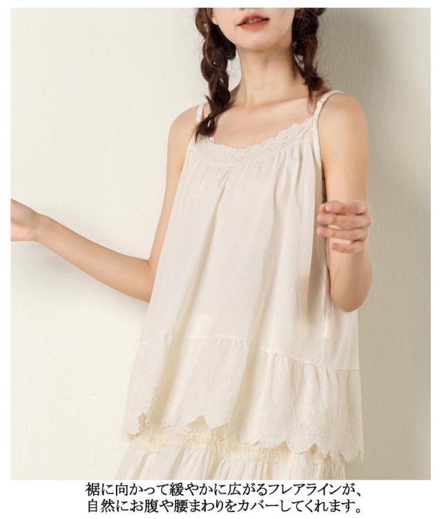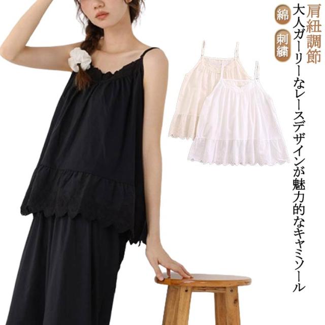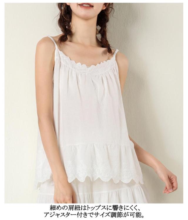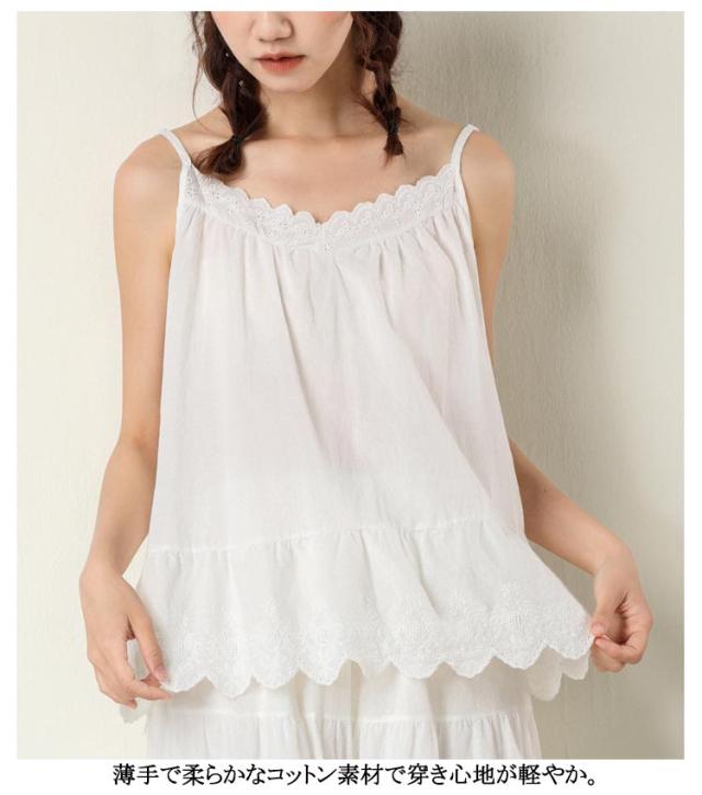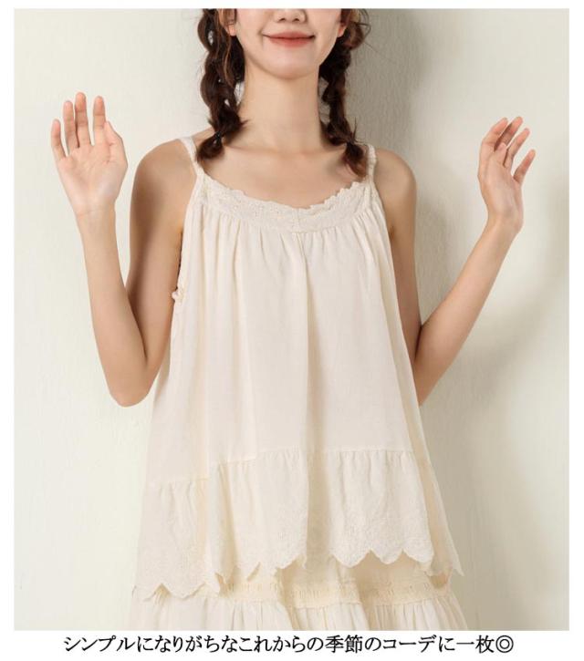 森ガール 無地 レース インナートップス 刺繍 Vネック キャミソール シンプル 日系 送料無料 ナチュラル 送料無料 ノースリーブ ロングキャミソール 肩紐調節 かわいい 綿 重ね着 カジュアル 春 ゆったり 大人