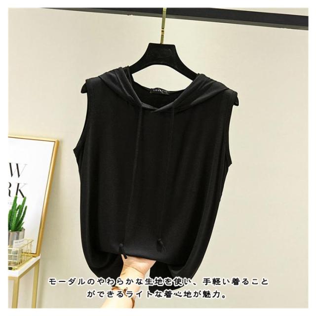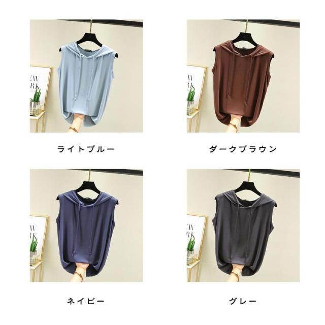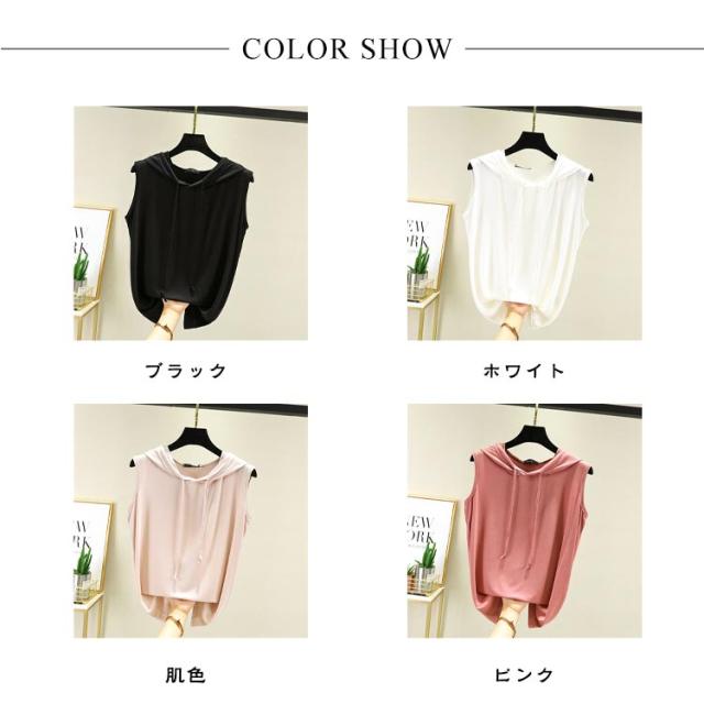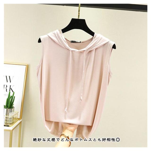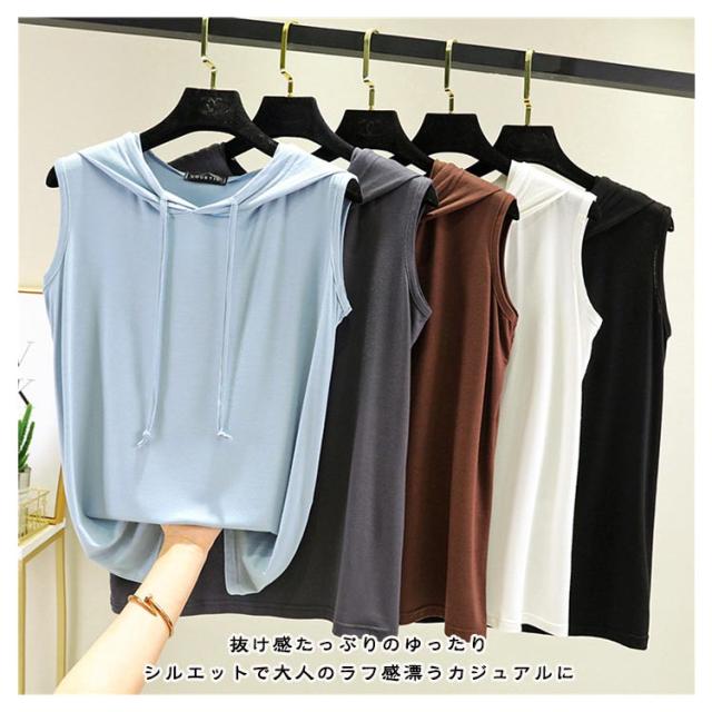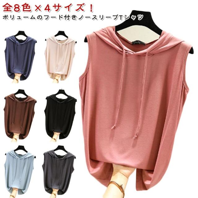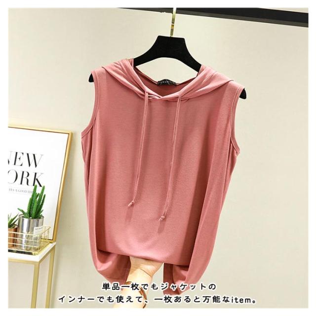 パーカー 春夏 タンクトップ tシャツ フード付きtシャツ プルオーバー ノースリーブパーカー ノースリーブパーカー カットソー 無地 ノースリーブtシャツ シンプル 袖なし カジュアル おしゃれ 春夏 大きサイズ レイヤード レディース トップス 薄手 涼しい