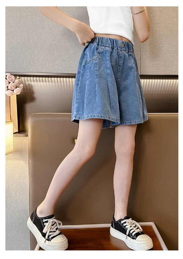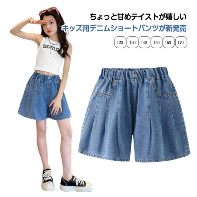 ジュニア 女の子 デニム フレアパンツ 夏 キッズ ショートパンツ 子供 子供服 デニムパンツ キュロットパンツ デニムショートパンツ 春 動きやすい 短パン 無地 ウエストゴム 大きいサイズ シンプル ショート丈 膝上丈 ボトムス スカンツ ガーリー 可愛い ギフト