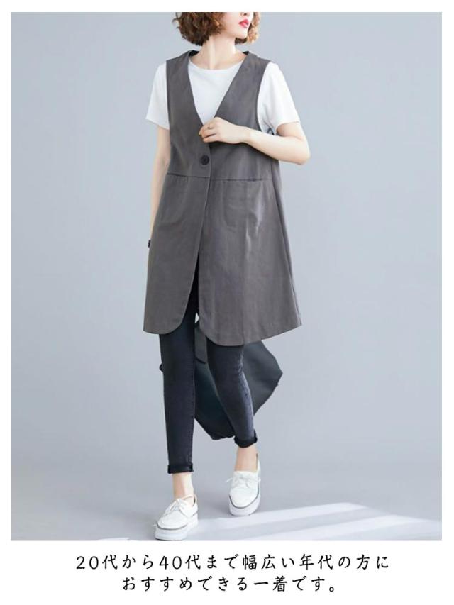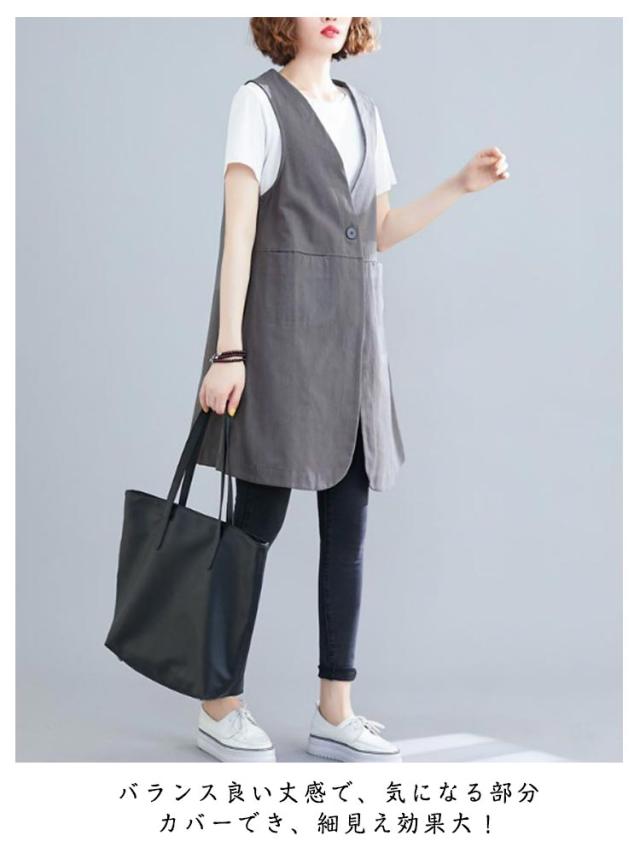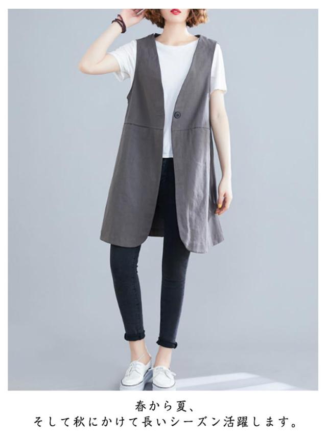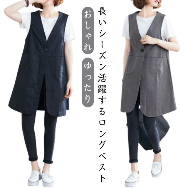 無地 ロングベスト 春秋 大きいサイズ ノースリーブ ロング丈 羽織 カジュアル トップス ロングベスト ジレ ロングジレ フォーマル 夏 春 秋 ゆったり 大人 体型カバー OL 女性 おしゃれ 通勤 シンプル 重ね着 レイヤード 20代 30代 40代 50代