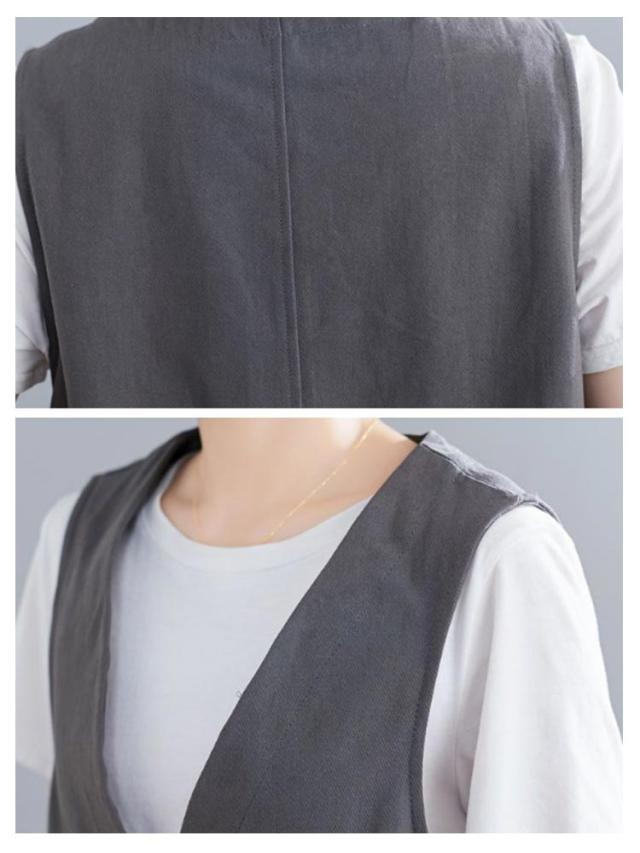 | 長いシーズン活躍するロングベスト 首元は深めのV開きで顔周りすっきり。 カットソーやブラウスを合わせてコーデ次第でロングシーズン楽しめます♪ 動きのあるシルエットで、後ろ姿も可愛くきまります。 自然体ながらも洗練された印象を与えます。シンプルながらもディテールにこだわった前開きデザインは、 どんなトップスとも相性抜群。 春から夏、そして秋にかけて長いシーズン活躍します。 20代から40代まで幅広い年代の方におすすめできる一着です。 バランス良い丈感で、気になる部分カバーでき、細見え効果大! | |
