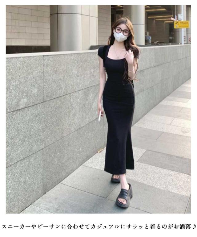 シンプル タイト レディース Tシャツ ワンピース 着痩せ ドレス 半袖 ロング丈ワンピース Uネック Tシャツワンピ 薄手 Tシャツ ワンピ おしゃれ スリム フェミニン フィット カジュアル 春 ストレッチ 着回し おしゃれ ルームウエア