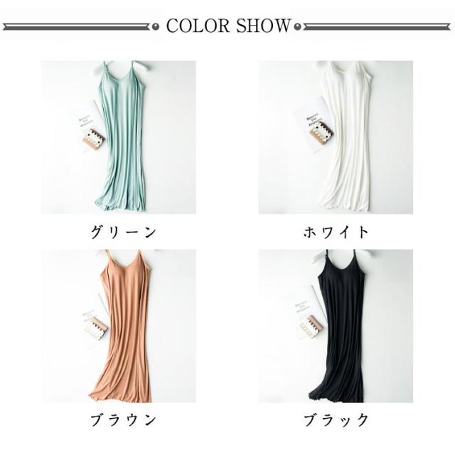 下着 キャミワンピース 部屋着 インナーワンピース カップ付き 薄手 ルームウェア ペチコート ロング丈 ノースリーブ 透けない ストレッチ キャミソール レディース インナーワンピース 無地 シンプル きれいめ パジャマ 春夏 大きいサイズ