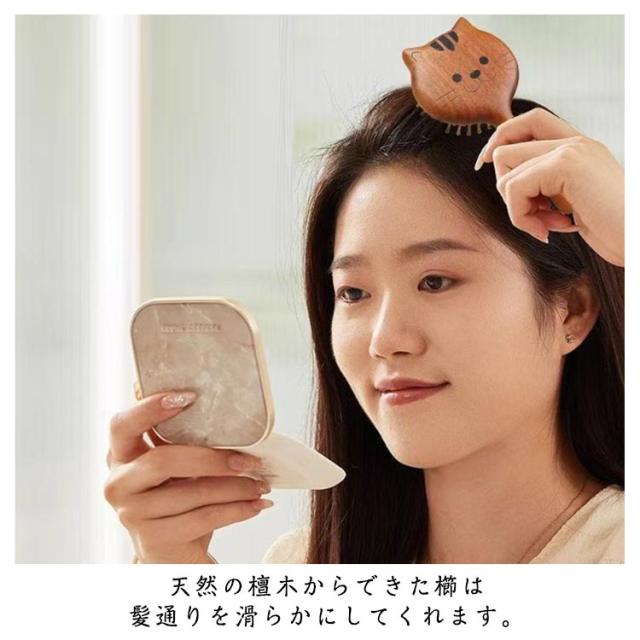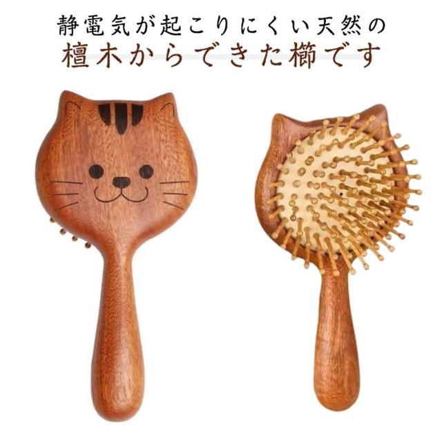 くし 櫛 髪くし 檀木 くし ヘアケア ヘアブラシ くし 猫柄 マッサージ 携帯用 髪クシ 頭皮 ウッド 頭皮ケア 櫛 木製 天然 木製 静電気防止 コーム 髪質改善 木製 サラサラ 速乾 可愛い