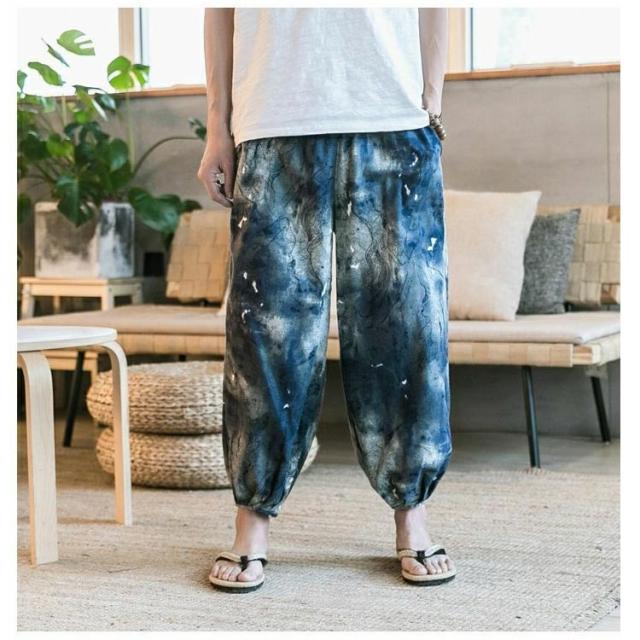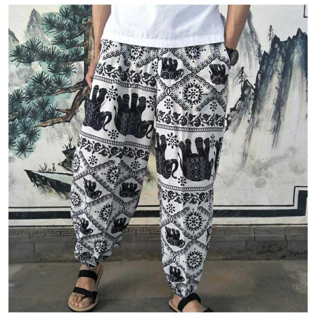 タイパンツ 象 イージーパンツ メンズ ぞう 薄手 9分丈 サルエルパンツ 綿麻 ゾウ 接触冷感 象柄 綿麻 ルームウェア パンツ ジョガーパンツ ゆったり ゴムウエスト 部屋着 冷感パンツ 涼しい とろみ 落ち感 春 夏 ズボン おしゃれ カジュアル