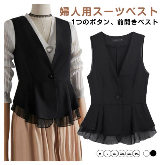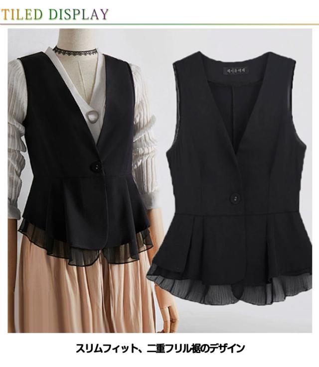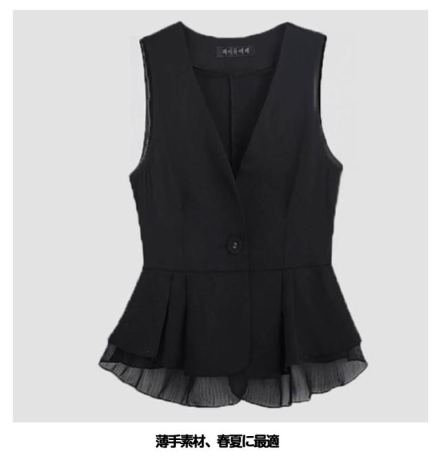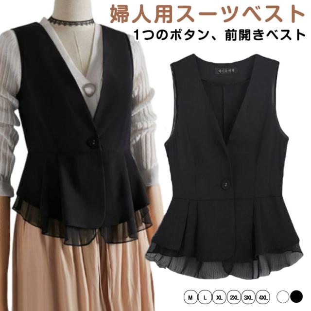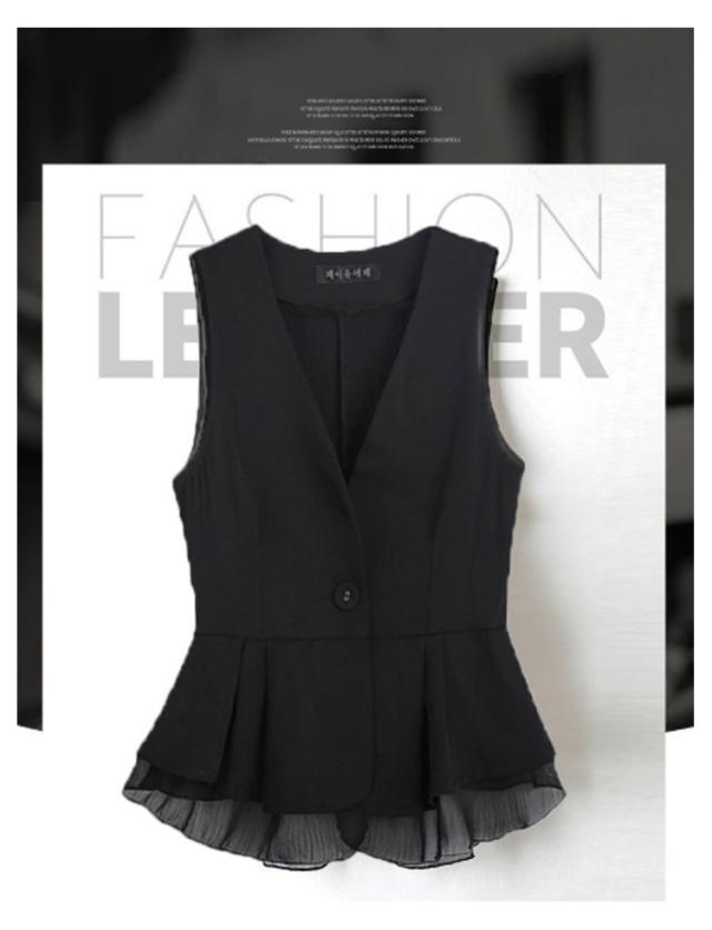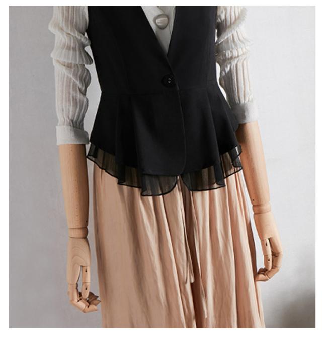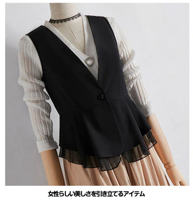 | 婦人用スーツベスト 1つのボタン、前開きベスト スリムフィット、二重フリル裾のデザイン 女性らしい美しさを引き立てるアイテム 薄手素材、春夏に最適 | |