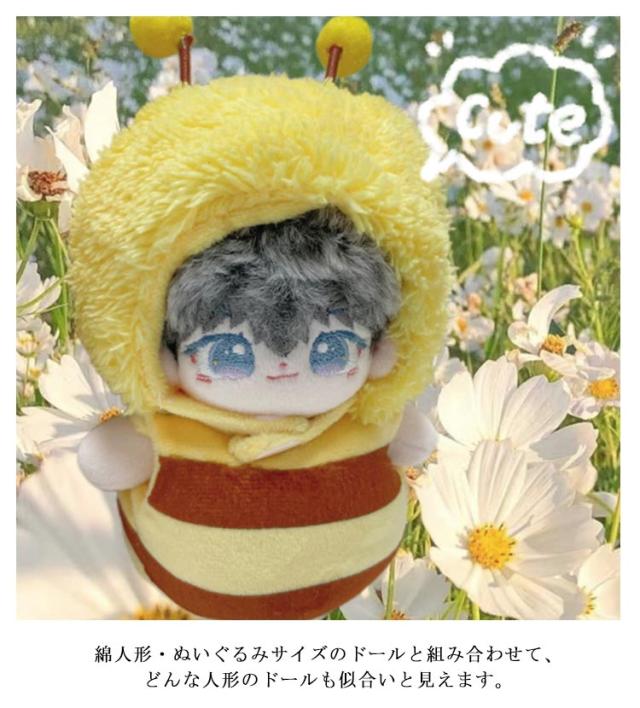 ミツバチ みつばち 洋服 帽子 コスチューム 送料無料 アイドル 蜂 10cm 小さい 2点セット 綿人形の服 セットアップ ぬいぐるみ 着せ替え 被り物 服 ぬい 人形 ヲタ活 アニメ 送料無料 推し活グッズ おしゃれ 可愛い ギフト