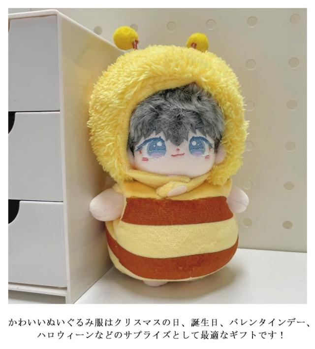 | 推しぬいをもっと可愛く!推しのぬいぐるみやマスコットに着せておしゃれを楽しめるぬい服です。触覚付きの帽子がかわいいミツバチさんのコスチュームに!蜂型のぬいぐるみ用着ぐるみが登場! 綿人形・ぬいぐるみサイズのドールと組み合わせて、どんな人形のドールも似合いと見えます。 かわいいぬいぐるみ服はクリスマスの日、誕生日、バレンタインデー、ハロウィーンなどのサプライズとして最適なギフトです! | |