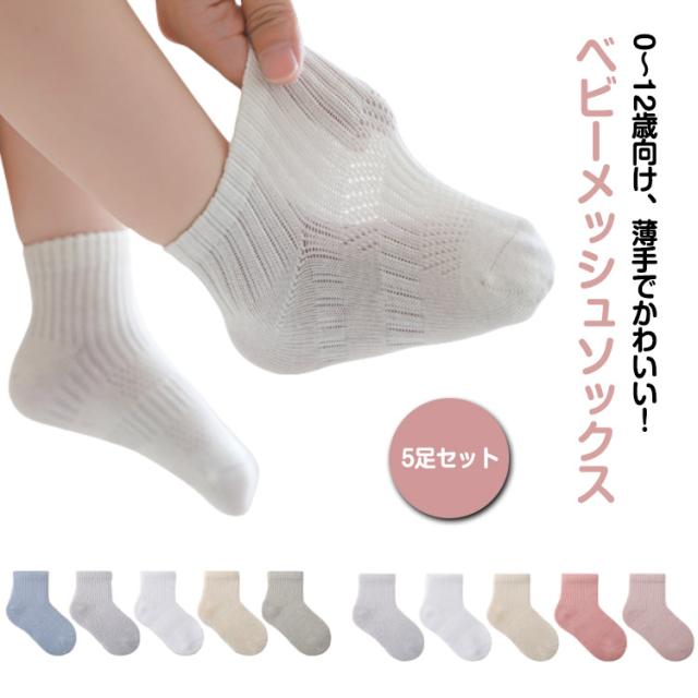 ベビー 子供 メッシュ 靴下 5足セット 幼稚園 キッズ 女の子 男の子 春夏 子供ソックス 保育園 綿 ベビー靴下 シンプル 子ども 赤ちゃん 5足組 涼しい ギフト 蒸れない 通気性 ソックス 通園 通学 無地 プレゼント 大きいサイズ