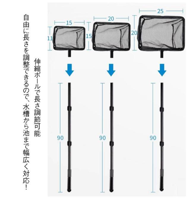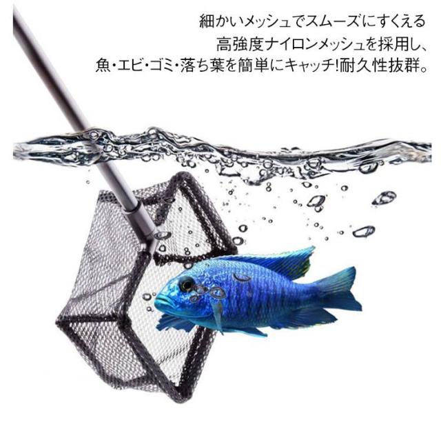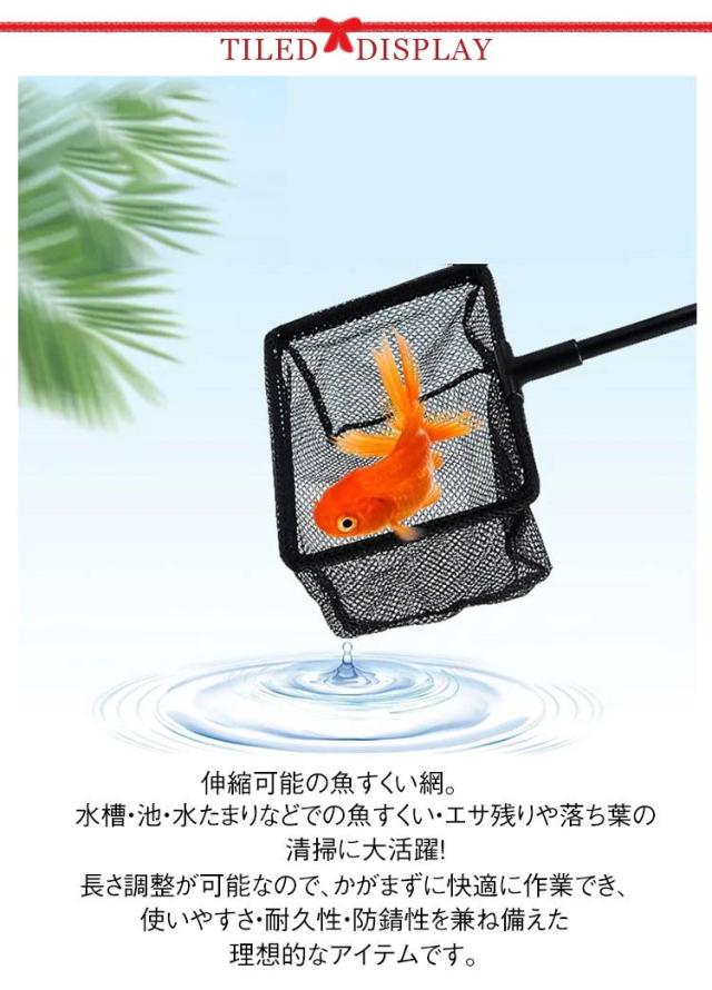 | 伸縮可能の魚すくい網。 水槽・池・水たまりなどでの魚すくい・エサ残りや落ち葉の清掃に大活躍! 長さ調整が可能なので、かがまずに快適に作業でき、使いやすさ・耐久性・防錆性を兼ね備えた理想的なアイテムです。 伸縮ポールで長さ調節可能 自由に長さを調整できるので、水槽から池まで幅広く対応! 細かいメッシュでスムーズにすくえる 高強度ナイロンメッシュを採用し、魚・エビ・ゴミ・落ち葉を簡単にキャッチ!耐久性抜群。 軽量&防錆で長持ち 軽量ながら頑丈で錆びにくく、長期間使用可能! 人間工学設計の滑り止めグリップ 握りやすい滑り止めハンドルで、長時間の作業でも疲れにくい。 マルチ用途で便利 魚すくい、水槽の掃除、水草除去、池の落ち葉回収など、これ一つで色々な用途に使える! | |