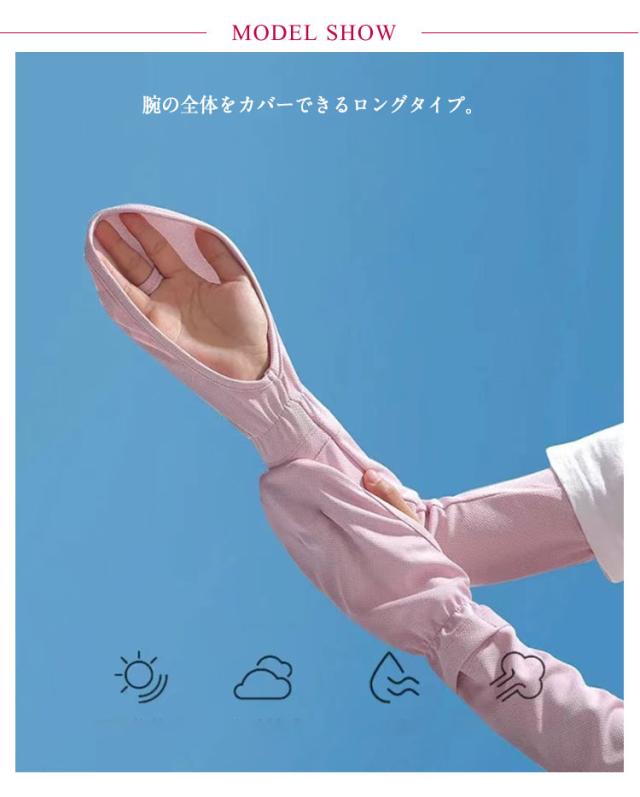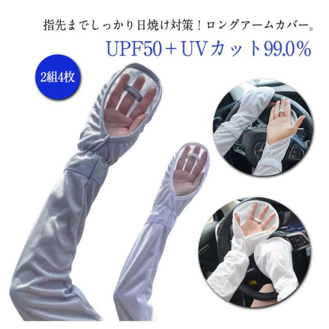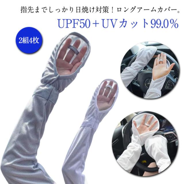 | 指先までしっかり日焼け対策!ロングアームカバー。【2組4枚】【メッシュ生地】 腕の全体をカバーできるロングタイプ。 UPF50+UVカット99.0% ひんやり接触冷感、吸水速乾で快適にお使いいただけます。 ストレッチ素材で伸縮性抜群! スポーツ・運転時などに♪ | |