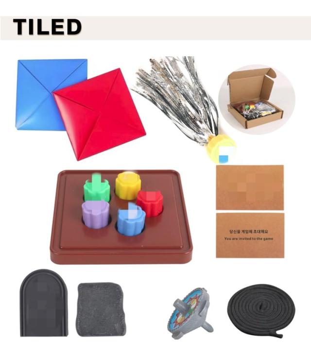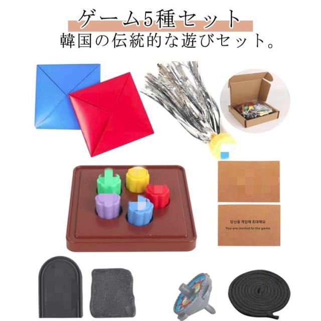 | 韓国の伝統的な遊びセット。ゲーム5種セット コンギ遊び、めんこ遊び、コマ回し、碑石打ち、チェギ蹴りの5種の韓国伝統の遊びが楽しめます。 | |