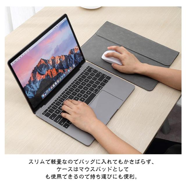 | 傷や汚れから守る ノートパソコンケース。 スリムで軽量なのでバッグに入れてもかさばらず、ケースはマウスパッドとしても使用できるので持ち運びにも便利。 マウスやケーブルなど小物を収納できるガジェットポーチがセットなのもうれしいポイント。 マグネットボタンで見た目もスッキリとした印象、PUレザー製で高級感のあるデザインです。 | |