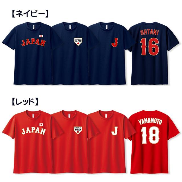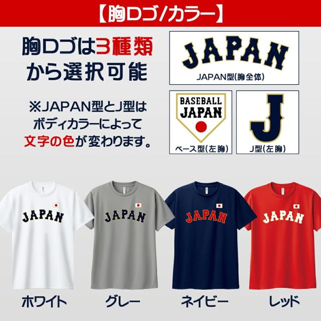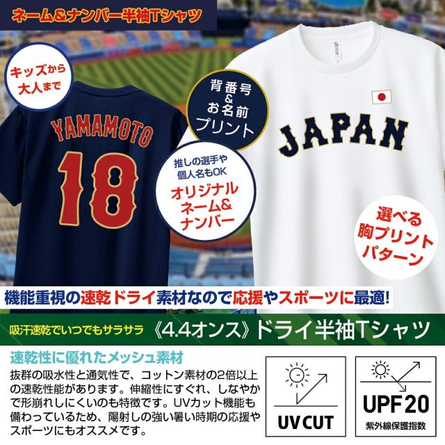 オーダーメイド 名入れ 半袖ドライTシャツ 3L〜5L 大きい サイズ 侍JAPAN 野球 日本代表 ユニフォーム WBC 背番号 プリント 4.4オンス ラッピング資材同梱可 メール便可K2R1