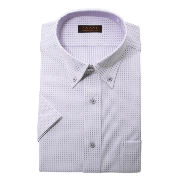 ニット ワイシャツ ※裄詰め対応不可 メンズ 半袖 ノーアイロン ストレッチ ボタンダウン 薄紫【GKY511-761】