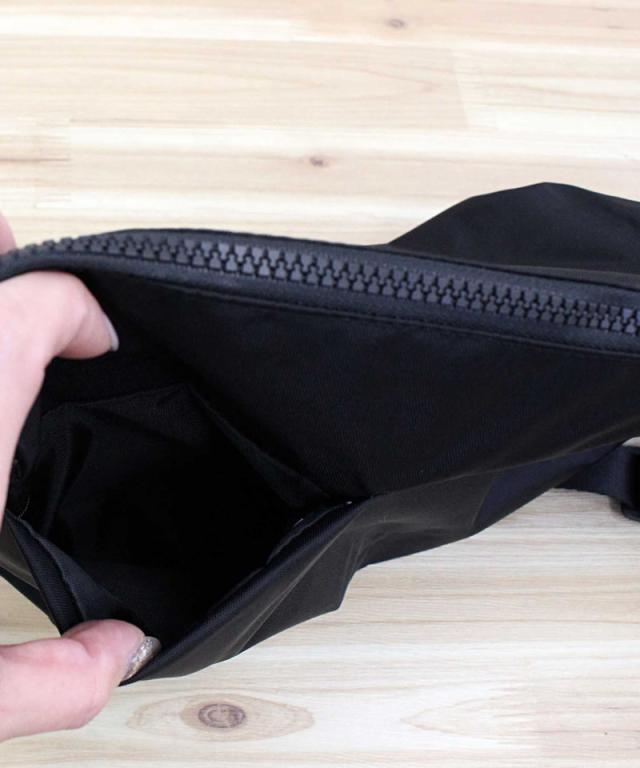 フロントのアウトポケットは隠しファスナースッキリとした印象に仕上がっています。背面オープンポケットがありスマホやアクセス頻度の高いものを収納するのに便利です。