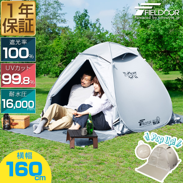 FIELDOOR テント ワンタッチ 160cm 1人用 2人用 3人用 小型 遮光 遮熱 UVカット 耐水 公園 ワンタッチテント ポップアップテント 日よけ サンシェード メッシュ ドームテント 簡易テント 簡単 外遊び ピクニック フルクローズ 1年保証 送料無料