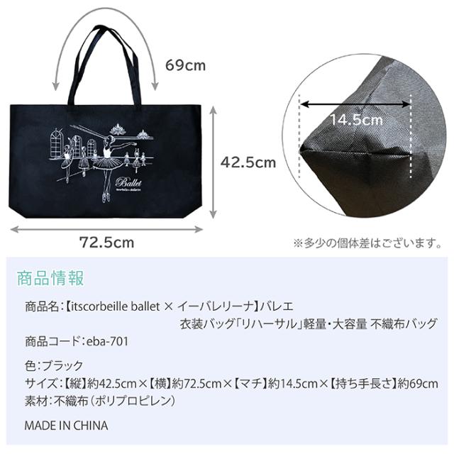 商品名:【itscorbeille ballet × イーバレリーナ】バレエ 衣装バッグ「リハーサル」軽量・大容量 不織布バッグ