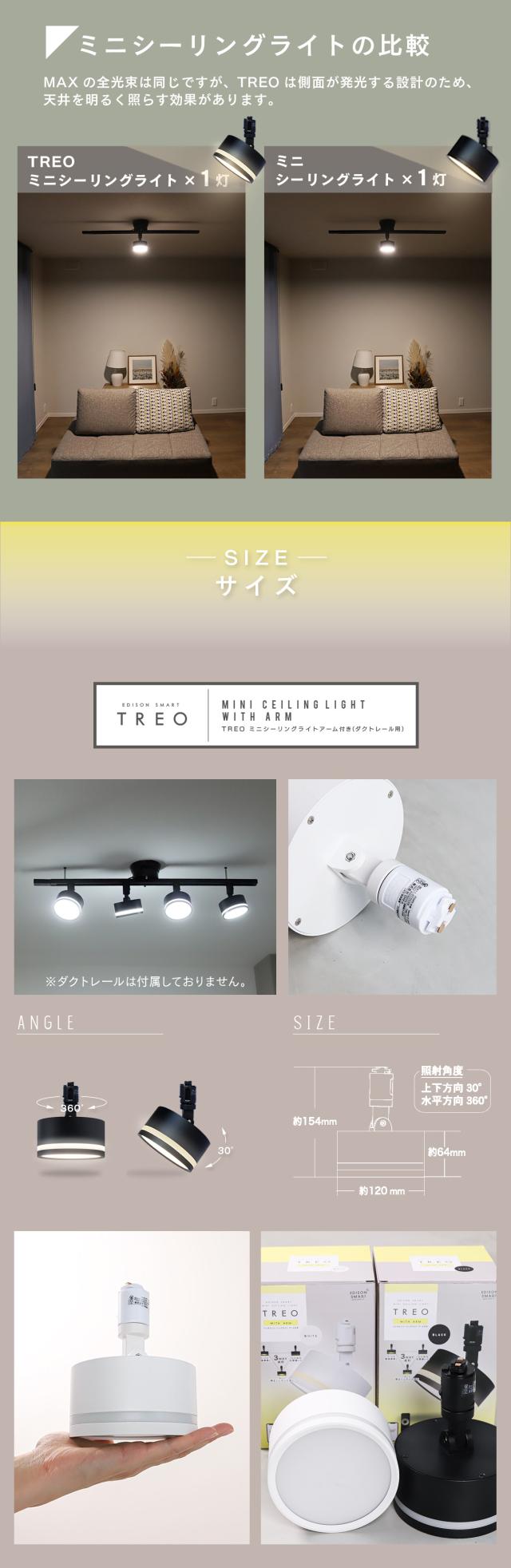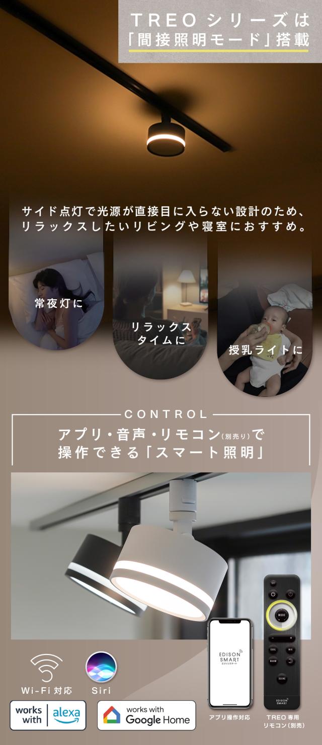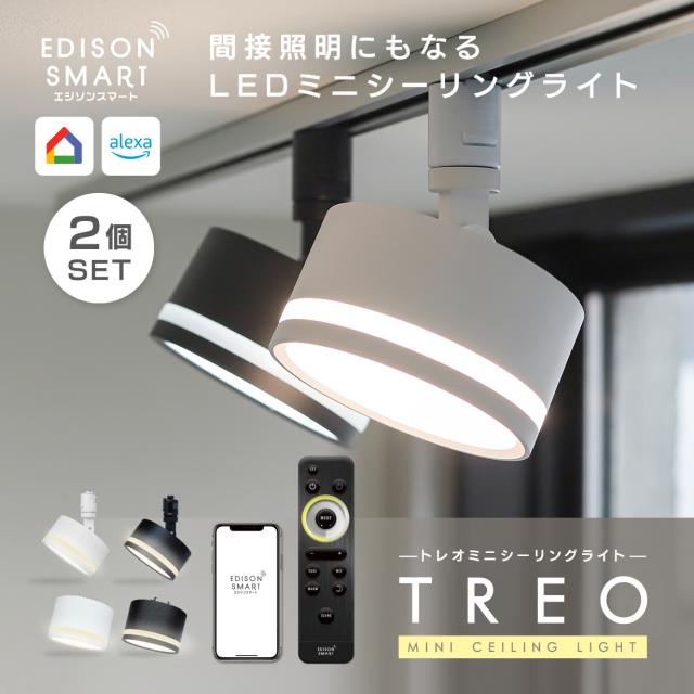 [2個セット]TREO ミニシーリングライト エジソンスマート LED一体型 おしゃれ かっこいい モダン 北欧風 高級感 ダウンライト風 明るい 間接照明になる 調光 調色 タイマー 遠隔操作 防犯 Wi-Fi アプリ操作 音声操作 小さい 小型 ダクトレール 引掛けシーリング 常夜灯