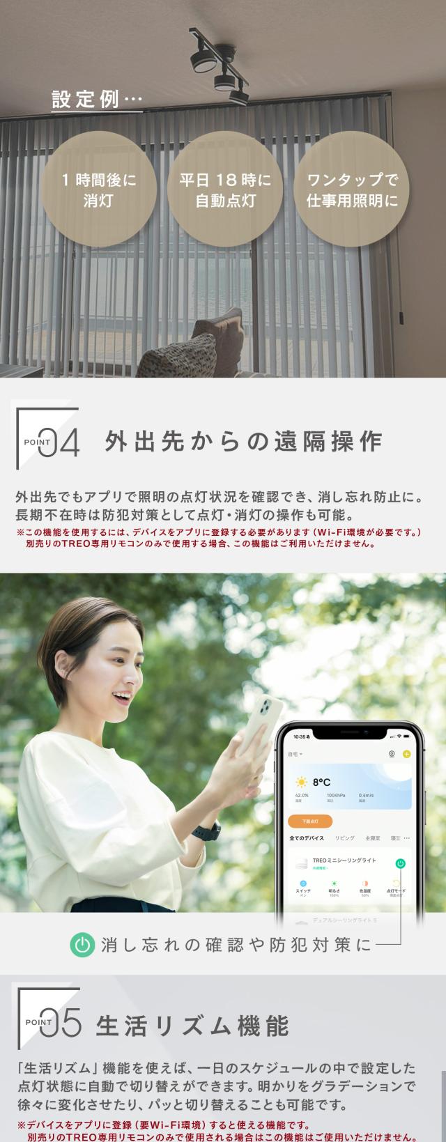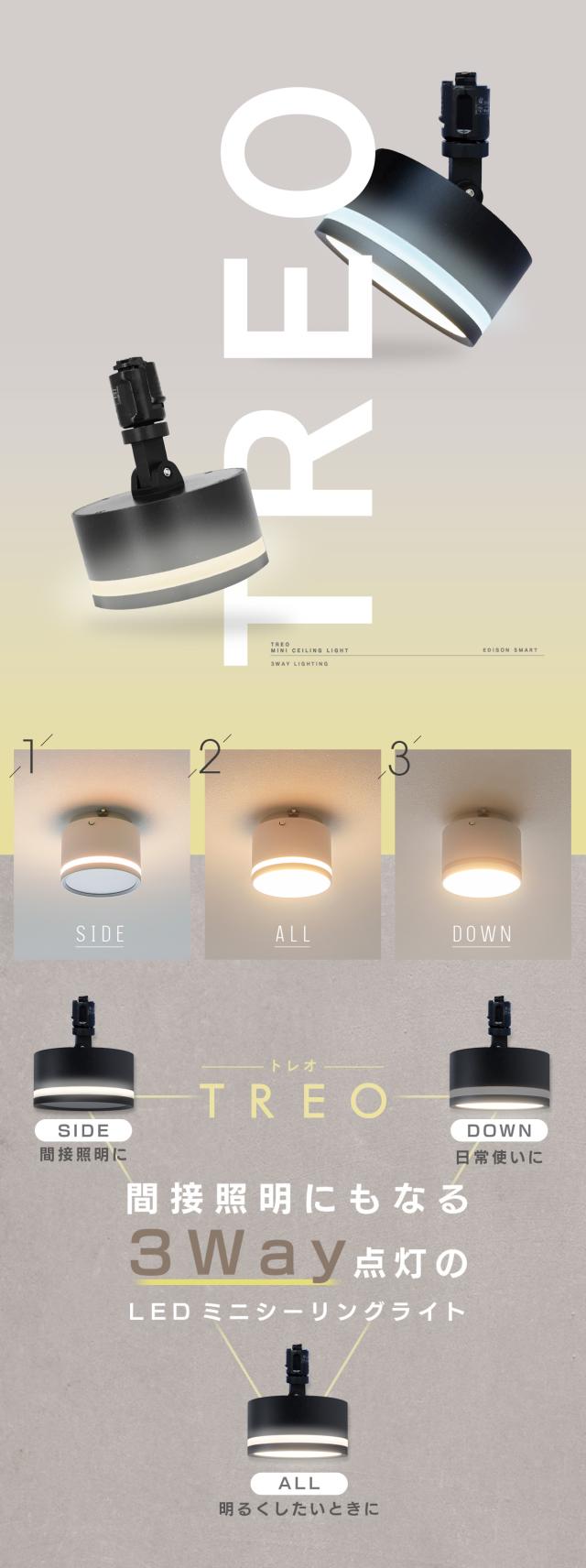 工事不要・賃貸OKのスマートLEDミニシーリングライト「TREO(トレオ)」は、側面・下面・両面点灯で、