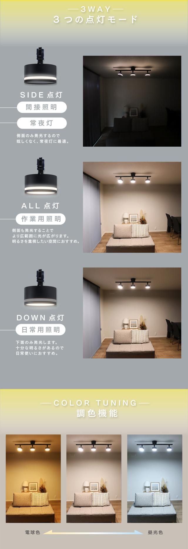 「側面」「下面」「両面」の点灯モードの切り替えが可能なので