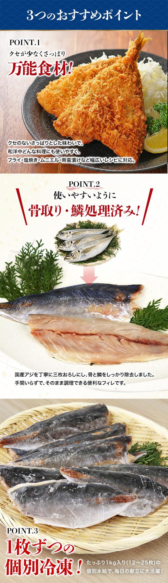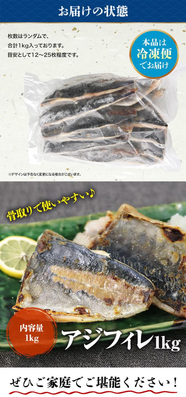 アジ 骨取り フィレ 1kg(12〜25枚) 冷凍 業務用 無塩 骨なし 処理済