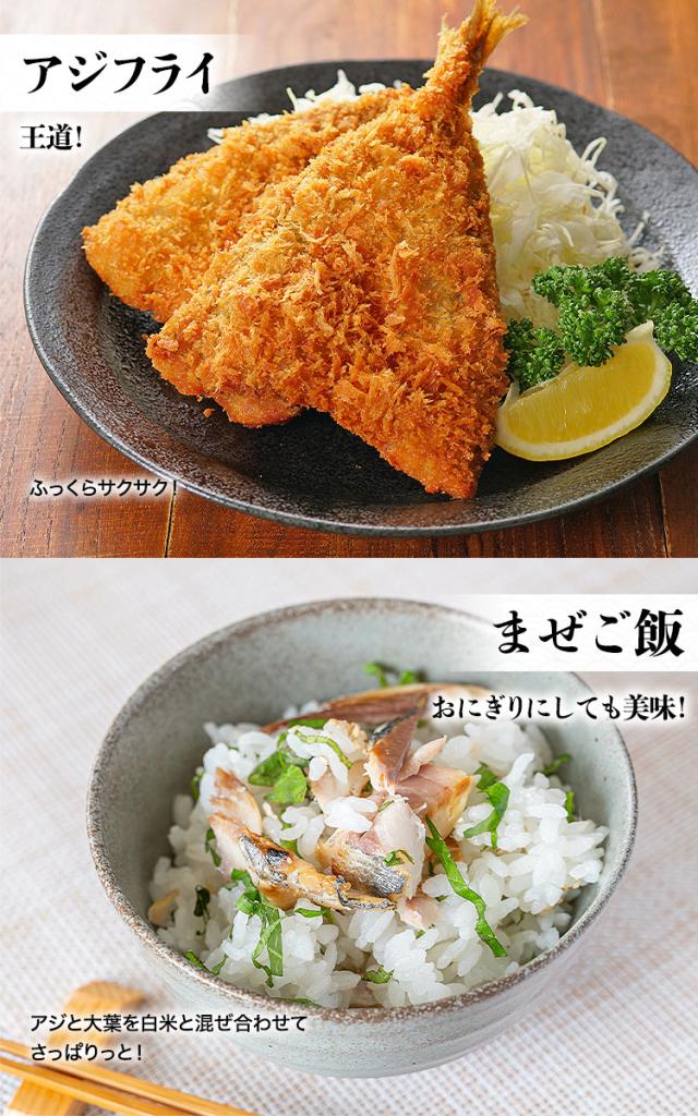- リピ買いです。アジフライにして食べてみましたが、身が厚く冷めても美味しいので、お弁当にも最適です。 このアジを食べたら、もうやみつき間違いないです。