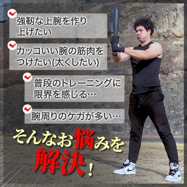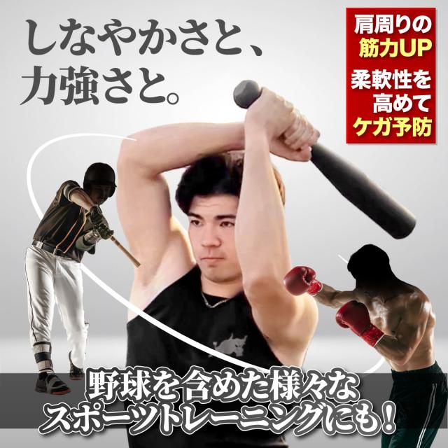 【振るだけで肩回りを中心に全身が鍛えられる】動作をする肩回りの筋力UPはもちろん、遠心力と重心のズレによる不安定さで体幹も鍛えられるトレーニングアイテム。MAX149km/hの速球を武器にしてきた元プロ野球選手もおすすめのアイテムです。