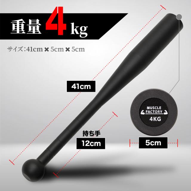 クラブベル 4kg ダンベル トレーニング 体幹 アイアン バット ジムハンマー メイスハンマー ウエイト パワー 野球 ゴルフ テニス ボクシング ボディビル 筋トレ 全身運動 スポーツ