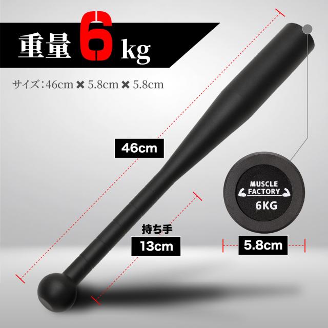 クラブベル 6kg ダンベル トレーニング 体幹 アイアン バット ジムハンマー メイスハンマー ウエイト パワー 野球 ゴルフ テニス ボクシング ボディビル 筋トレ 全身運動 スポーツ