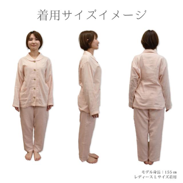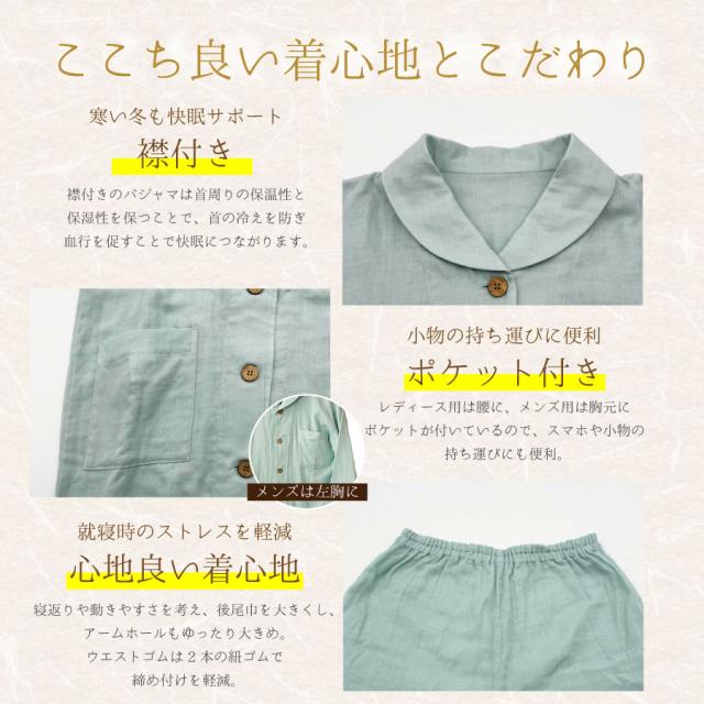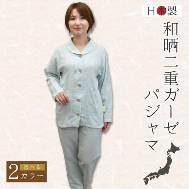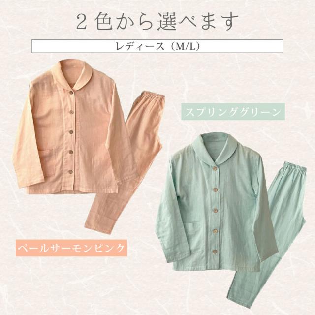 パジャマ 日本製 ガーゼ レディース 和晒 綿100% 二重ガーゼ ユニセックス 長袖 前開き 襟付き ポケット付 ナイトウェア 吸水 寝巻き ピンク グリーン ブルー 誕生日 プレゼント お祝い M L かわいい 部屋着 入院 介護 おしゃれ 国産