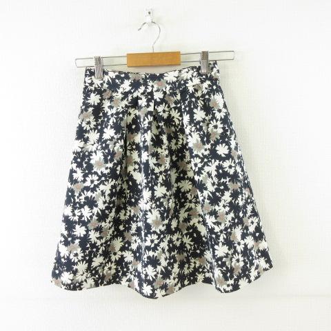 【中古】ロートレアモン LAUTREAMONT Rue de Blis ミニスカート フレア 花柄 紺 オフホワイト 1 *A327 レディース