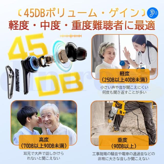 集音器の長いハンドルで受音孔とスピーカーを分離して音の戻りを防ぐため、ハウリング制御実現しました。この集音器は軽度から中程度の難聴に最適です。 35dBの増益で他のほとんどの集音器よりも優れています。