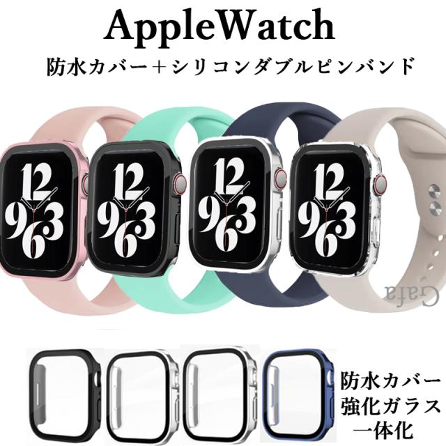 アップルウォッチカバーバンドセット シリコン Apple watchカバーバンド 防水強化ガラスカバー Apple Watch 40mm 41mm 42mm 44mm 45mm 46mm 49mm