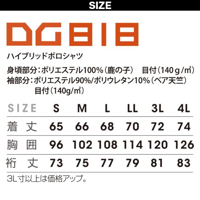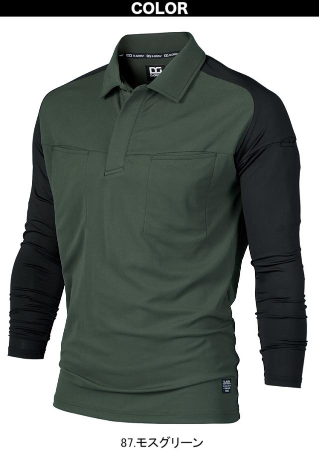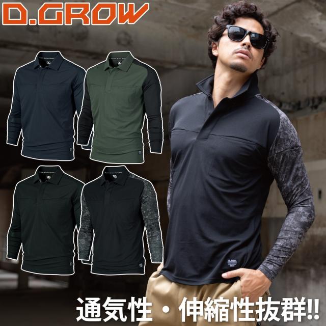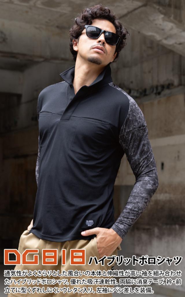 2025年新商品 KURODARUMA クロダルマ ハイブリッドポロシャツ DG818 D.GROW ディグロー 吸汗速乾 両脇消臭テープ 通気性 伸縮性 春夏新作 作業着 長袖ポロシャツ