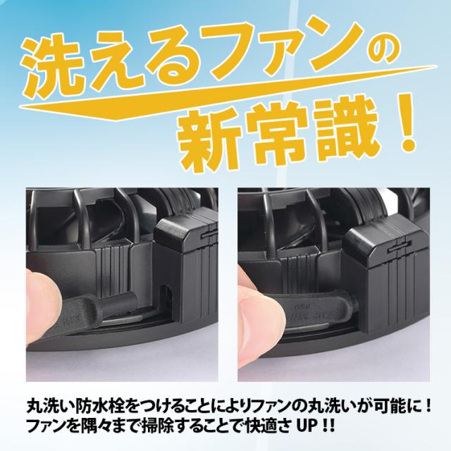 丸洗い防水栓をつける事により丸洗い可能に!洗えるファン新登場!