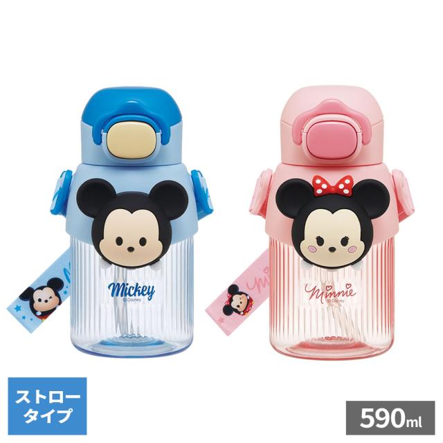 立体マスコット付ストローボトル 590ml ツムツムミッキー/ツムツムミニー | 水筒 キャラクター ストロー付き シリコン ワンタッチ クリアボトル 肩ひも付き ツムツム かわいい 子ども 幼児 キッズ